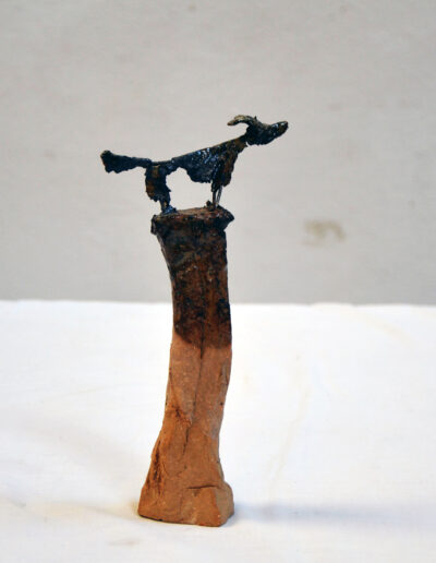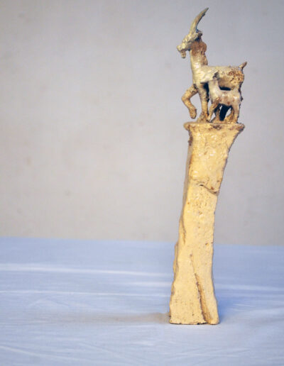 Ziege mit Nachwuchs, Holzbrand, 120 cm, 2018