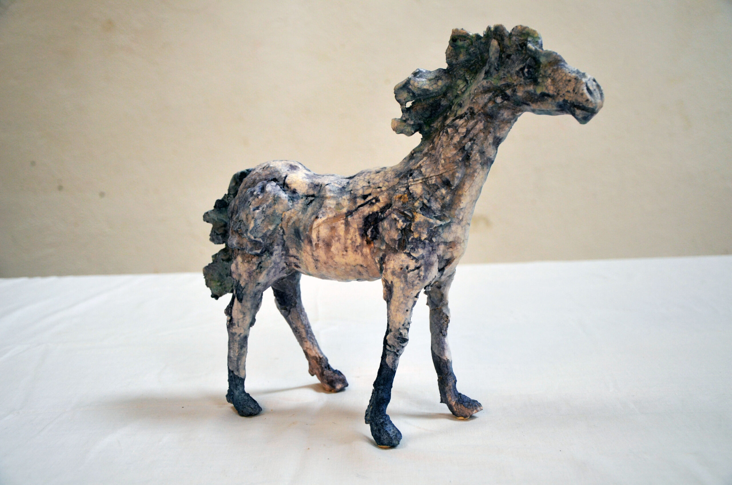 Blaues Pferd, Raku, 27 cm, 2015