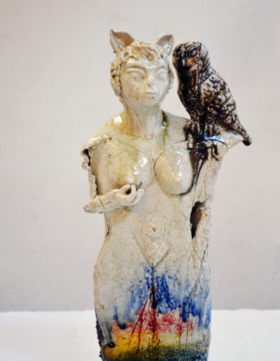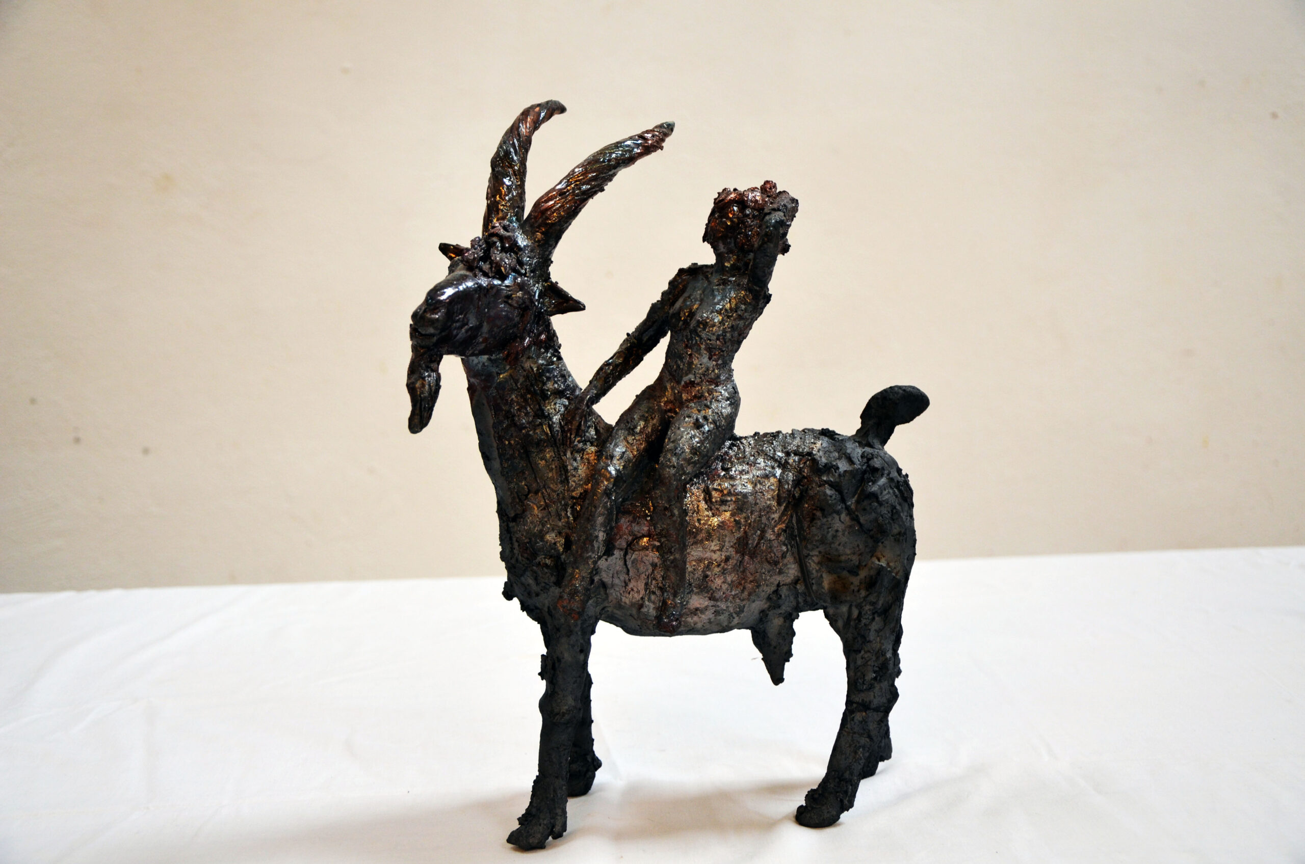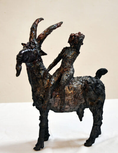 Ziegen Reiterin, Raku, 27 cm, 2020