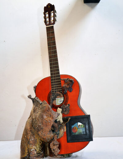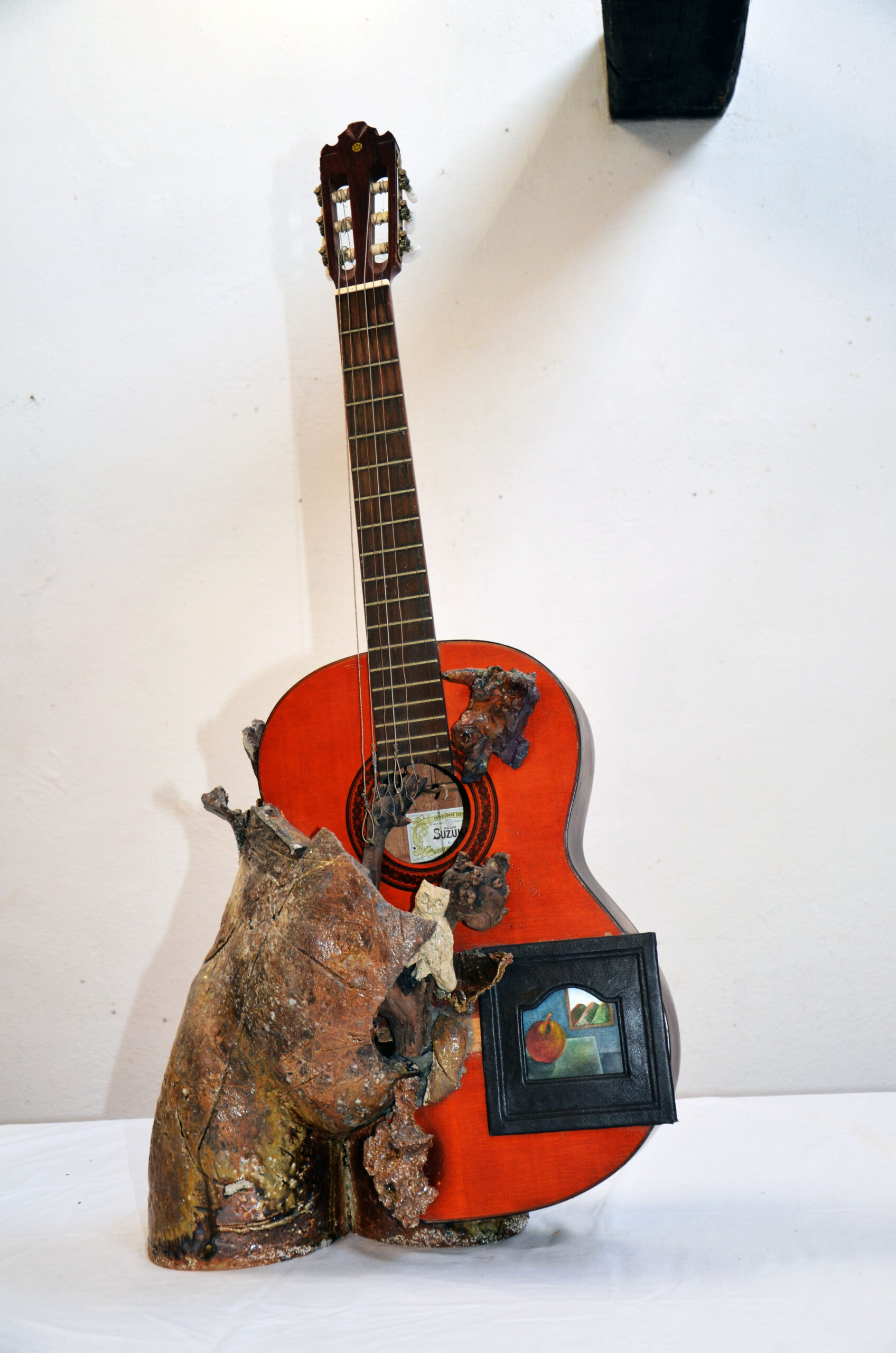Die Inspiration, Mixed Media, Assemblage, Holz, Keramik, Acrylfarbe, Leder, 90 cm, 2019